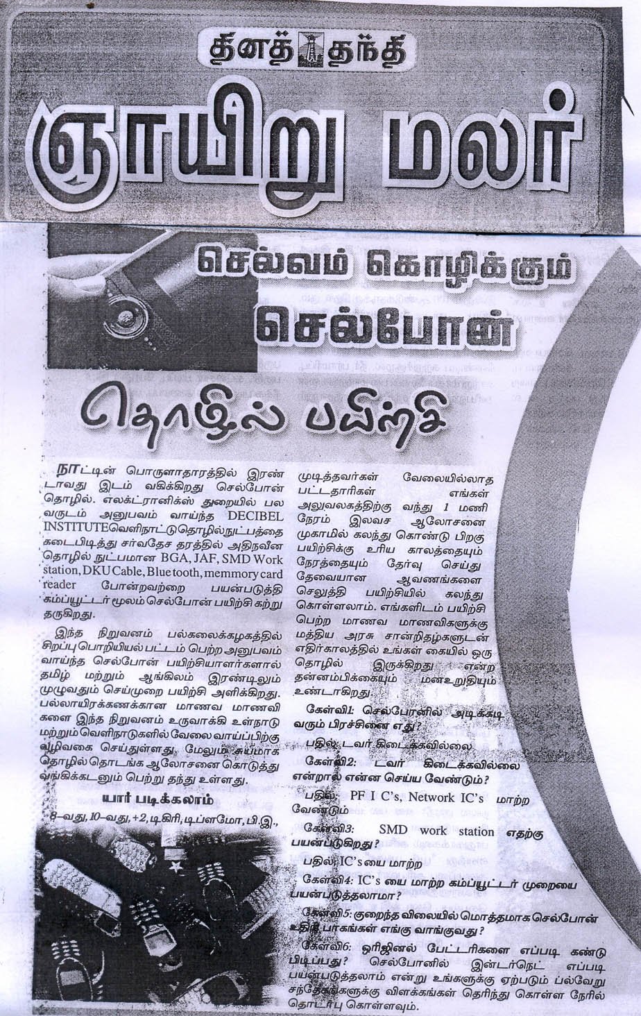Published in Newspapers - நிறுவனத்தை பற்றி செய்திதாள்கள் மற்றும் இதழ்களில் வந்தவை
